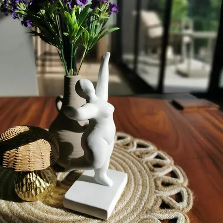 Да, на территории этой просторной квартиры можно искупаться в личном бассейне.